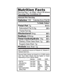 Our airy crunchy straws combine garden grown potatoes and ripe vegetables to form a better for you snack that has 30 less fat than the leading potato chip and allows for 38 straws per serving.
